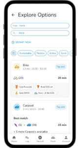 - Select your mode of transportation—currently, you can choose from Bike, Carpool, or Walk.